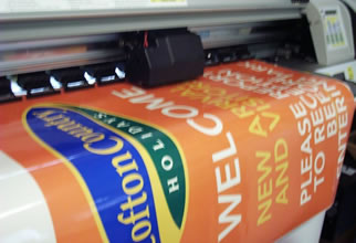 fabrics and all types of adhesive vinyls. With our large format hot